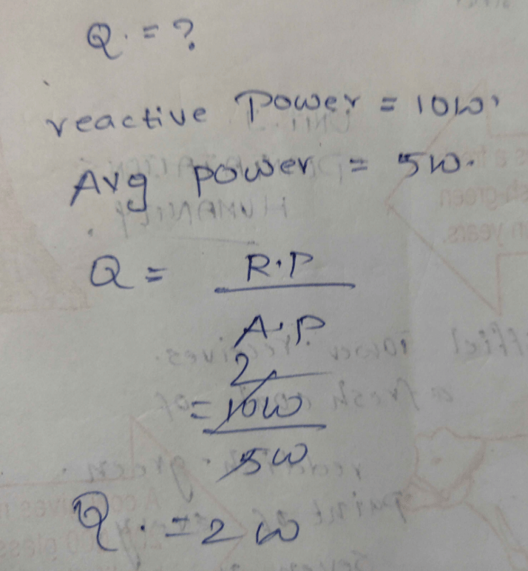 Find the value of Q if the reactive power is 10W and the average power is 5W.