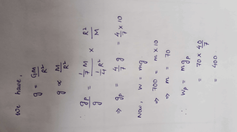 What is the weight of a 700 g of body on a planet whose is 1/7 th of t...