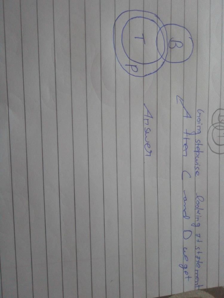 B is the correct option. The ACD  all together makes  a sensible statement set. A. Some  blue are tree. C. All tree are paper. D. Some blue are paper.