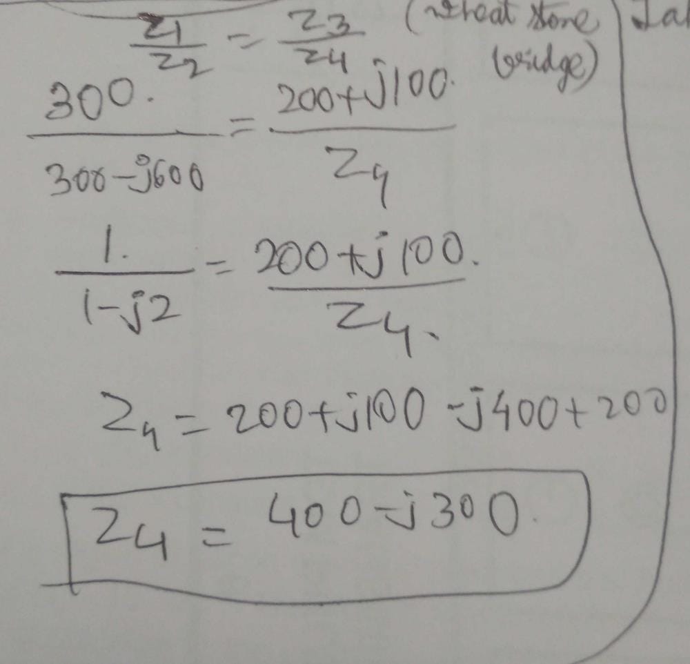 Solutions for In the bridge shown in fig. P1.7.13, Z1 = 300Ω, Z2=( 300 - 600) Ω, Z3=(200 + 100)Ω. The Z4 at balance isa)400 + j 300Ωb)400 - j 300 Ωc)j 100Ωd)-j 900ΩCorrect answer is option 'B'. Can you explain this answer? in English & in Hindi are available as part of our courses for Electrical Engineering (EE). Download more important topics, notes, lectures and mock test series for Electrical Engineering (EE) Exam by signing up for free.