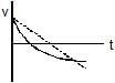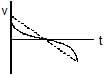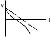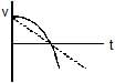 Which graph shows best the velocity-time graph for an object launched vertically into the air when air resistance is given by |D| = bv? The dashed line shows the velocity graph if there were no air resistance.