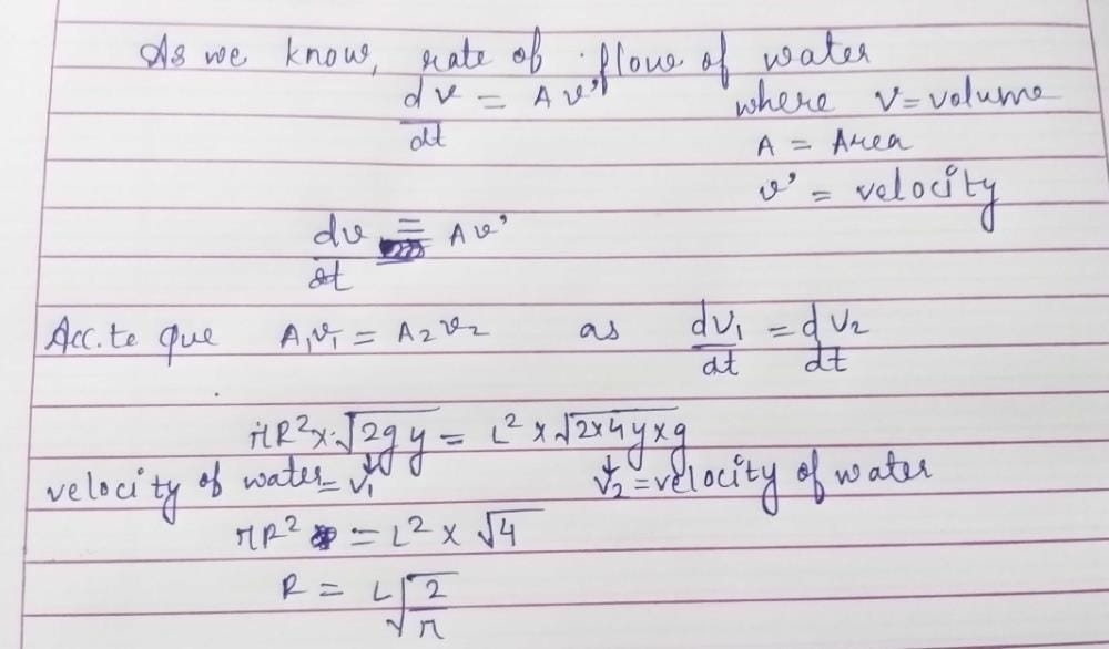 Here you can find the meaning of A large open tank has two small holes in its vertical wall as shown in figure. One is a square hole of side 'L' at a depth '4y' from the top and the other is a circular hole of radius 'R' at a depth ‘y’ from the top. When the tank is completely filled with water, the quantities of water flowing out per second from both holes are the same. Then, 'R' is equal to :a)b)c)d)Correct answer is option 'C'. Can you explain this answer? defined & explained in the simplest way possible. Besides giving the explanation of A large open tank has two small holes in its vertical wall as shown in figure. One is a square hole of side 'L' at a depth '4y' from the top and the other is a circular hole of radius 'R' at a depth ‘y’ from the top. When the tank is completely filled with water, the quantities of water flowing out per second from both holes are the same. Then, 'R' is equal to :a)b)c)d)Correct answer is option 'C'. Can you explain this answer?, a detailed solution for A large open tank has two small holes in its vertical wall as shown in figure. One is a square hole of side 'L' at a depth '4y' from the top and the other is a circular hole of radius 'R' at a depth ‘y’ from the top. When the tank is completely filled with water, the quantities of water flowing out per second from both holes are the same. Then, 'R' is equal to :a)b)c)d)Correct answer is option 'C'. Can you explain this answer? has been provided alongside types of A large open tank has two small holes in its vertical wall as shown in figure. One is a square hole of side 'L' at a depth '4y' from the top and the other is a circular hole of radius 'R' at a depth ‘y’ from the top. When the tank is completely filled with water, the quantities of water flowing out per second from both holes are the same. Then, 'R' is equal to :a)b)c)d)Correct answer is option 'C'. Can you explain this answer? theory, EduRev gives you an ample number of questions to practice A large open tank has two small holes in its vertical wall as shown in figure. One is a square hole of side 'L' at a depth '4y' from the top and the other is a circular hole of radius 'R' at a depth ‘y’ from the top. When the tank is completely filled with water, the quantities of water flowing out per second from both holes are the same. Then, 'R' is equal to :a)b)c)d)Correct answer is option 'C'. Can you explain this answer? tests, examples and also practice NEET tests.
