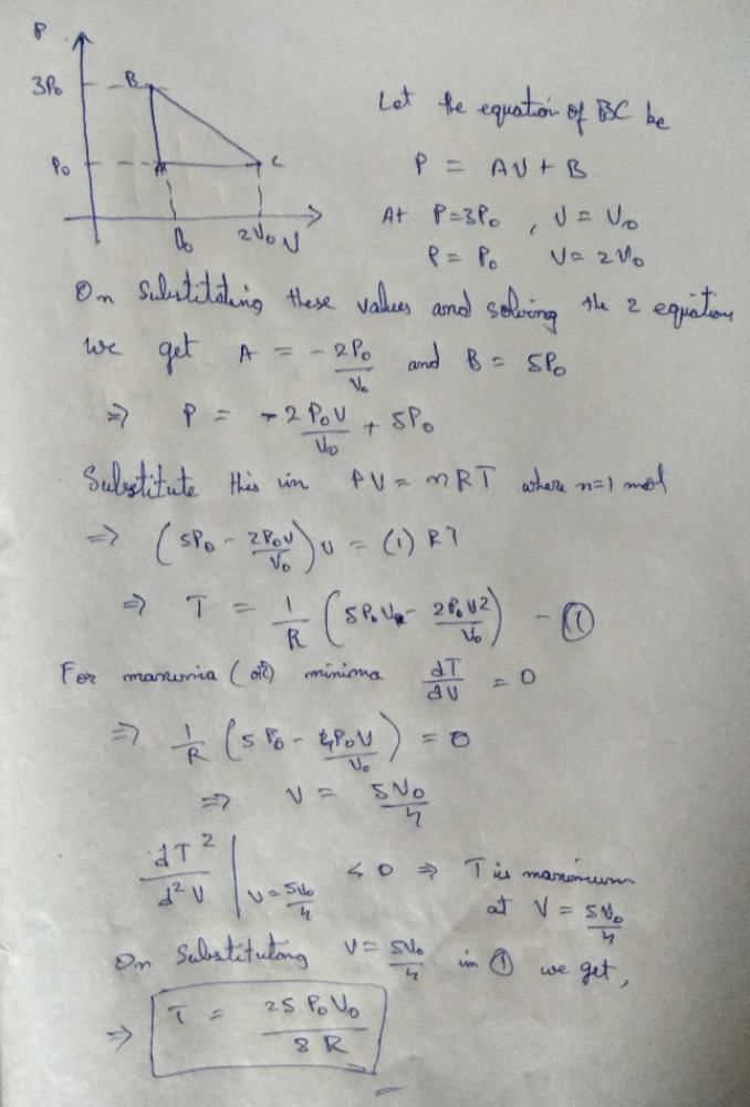 Here you can find the meaning of One mole of an ideal monatomic gas is taken along the path ABCA as shown in the PV diagram. The maximum temperature attained by the gas along the path BC is given by :a)b)c)d)Correct answer is option 'C'. Can you explain this answer? defined & explained in the simplest way possible. Besides giving the explanation of One mole of an ideal monatomic gas is taken along the path ABCA as shown in the PV diagram. The maximum temperature attained by the gas along the path BC is given by :a)b)c)d)Correct answer is option 'C'. Can you explain this answer?, a detailed solution for One mole of an ideal monatomic gas is taken along the path ABCA as shown in the PV diagram. The maximum temperature attained by the gas along the path BC is given by :a)b)c)d)Correct answer is option 'C'. Can you explain this answer? has been provided alongside types of One mole of an ideal monatomic gas is taken along the path ABCA as shown in the PV diagram. The maximum temperature attained by the gas along the path BC is given by :a)b)c)d)Correct answer is option 'C'. Can you explain this answer? theory, EduRev gives you an ample number of questions to practice One mole of an ideal monatomic gas is taken along the path ABCA as shown in the PV diagram. The maximum temperature attained by the gas along the path BC is given by :a)b)c)d)Correct answer is option 'C'. Can you explain this answer? tests, examples and also practice JEE tests.