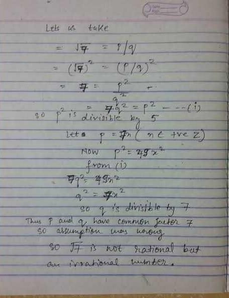 that is a and b have atleast one common factor 7. This is contridite to the fact that a and b have no common factor.This is happen because of our wrong assumption.