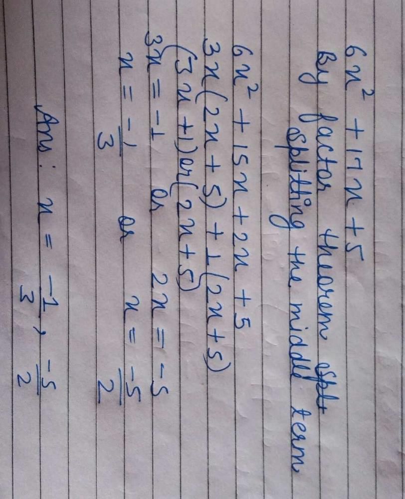 Class 10 Exam  >  Class 10 Questions  >  Factorise 6x² + 17x + 5 using factor theorem.... Start Learning for Free