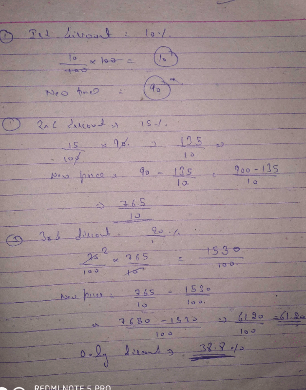 Three successive discount of 10% , 15% and 20% is equivalent to a single discounta)41.5%b)40%c)38.8%d)37.5%Correct answer is option 'C'. Can you explain this answer?, a detailed solution for Three successive discount of 10% , 15% and 20% is equivalent to a single discounta)41.5%b)40%c)38.8%d)37.5%Correct answer is option 'C'. Can you explain this answer? has been provided alongside types of Three successive discount of 10% , 15% and 20% is equivalent to a single discounta)41.5%b)40%c)38.8%d)37.5%Correct answer is option 'C'. Can you explain this answer? theory, EduRev gives you an