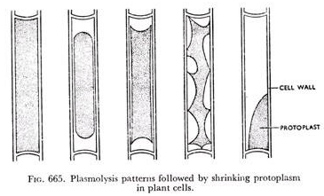 In many plant cells, the protoplasm may shrink completely away from the cell wall and collect as a spherical mass in the centre or in one corner of the cell.