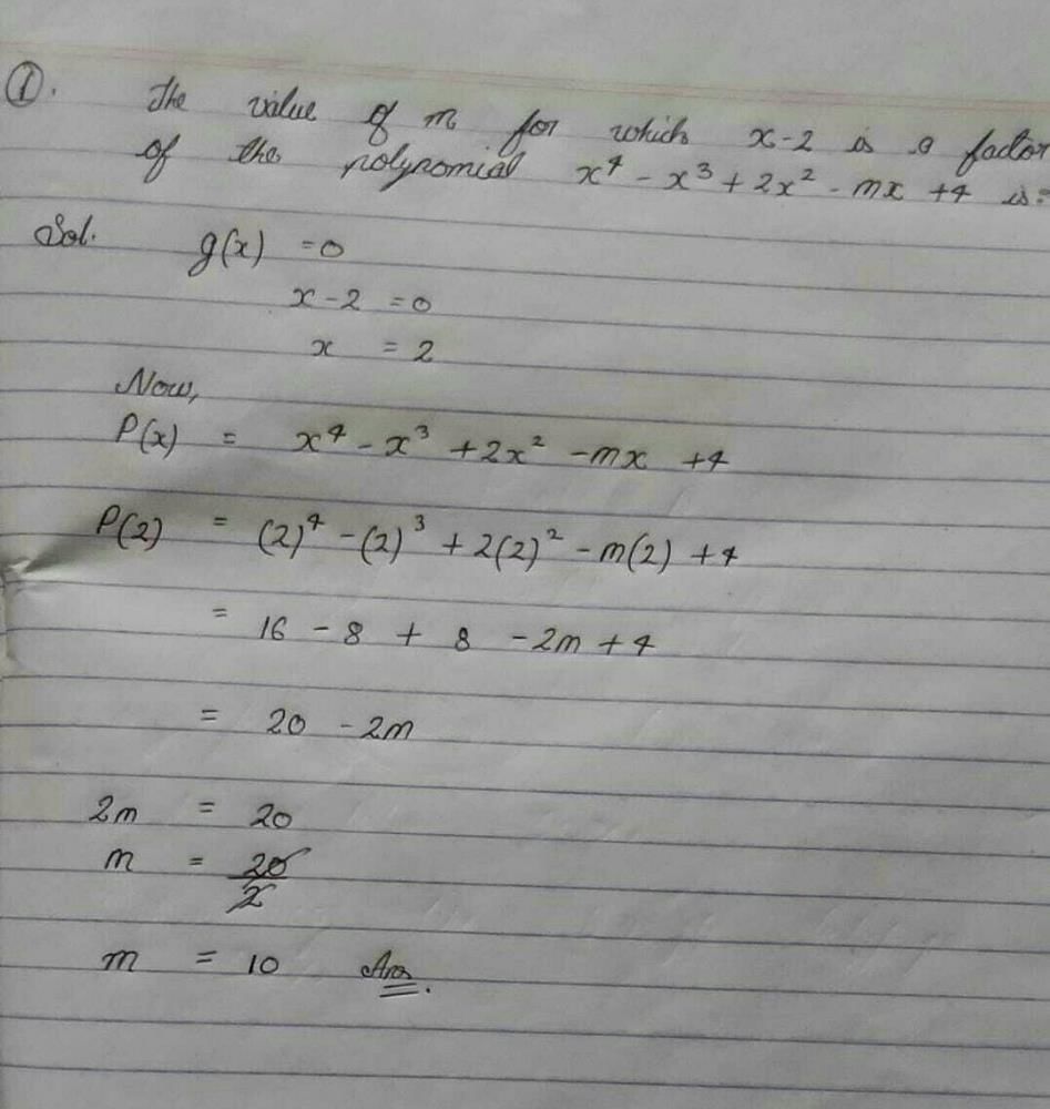 Class 9 Exam  >  Class 9 Questions  >  The value of m for which x – 2 is a fac... Start Learning for Free