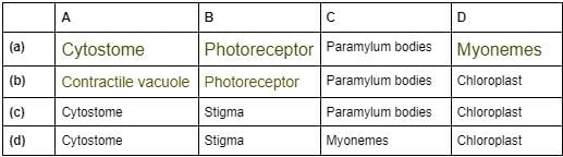 Find important definitions, questions, meanings, examples, exercises and tests below for Study the given figure showing structure of Euglena, and select the option that correctly identifies A, B, C and D.a)ab)bc)cd)dCorrect answer is option 'C'. Can you explain this answer?.