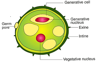 B. A mature pollen grain contains vegetative cell and generative cell.