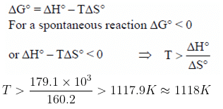 In the conversion of limestone to lime, CaCO3(s) ⇌ CaO(s) + CO2(g), the values of ΔH0 and ΔS0 are +179.1kJ mol-1 and 160.2 J/K, respectively, at 298 K and 1 bar. Assuming that H0 and ΔS0 do not change with temperature, the temperature above which conversion of limestone to lime will be spontaneous isa)1008 Kb)1200 Kc)845 Kd)1118 KCorrect answer is option 'D'. Can you explain this answer?, a detailed solution for In the conversion of limestone to lime, CaCO3(s) ⇌ CaO(s) + CO2(g), the values of ΔH0 and ΔS0 are +179.1kJ mol-1 and 160.2 J/K, respectively, at 298 K and 1 bar. Assuming that H0 and ΔS0 do not change with temperature, the temperature above which conversion of limestone to lime will be spontaneous isa)1008 Kb)1200 Kc)845 Kd)1118 KCorrect answer is option 'D'. Can you explain this answer? has been provided alongside types of In the conversion of limestone to lime, CaCO3(s) ⇌ CaO(s) + CO2(g), the values of ΔH0 and ΔS0 are +179.1kJ mol-1 and 160.2 J/K, respectively, at 298 K and 1 bar. Assuming that H0 and ΔS0 do not change with temperature, the temperature above which conversion of limestone to lime will be spontaneous isa)1008 Kb)1200 Kc)845 Kd)1118 KCorrect answer is option 'D'. Can you explain this answer? theory, EduRev gives you an