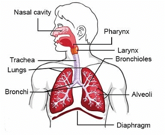 Nose - Pharynx - Larynx - Trachea - Bronchi - Bronchioles - Alveoli