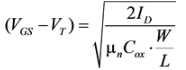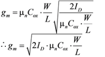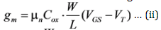 As only W/L is doubled and current In is constant, hence to see the effect on transconductance, finding the value of (VGS - VT) in term of constant In from equation (i),