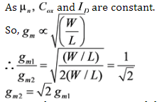 The transconductance of a n-channel MOSFET working in saturation is . If the parameter width to length ratio is doubled by maintaining the current of same level then the new transconductance is