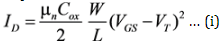 Expression of drain current for a n-channel MOSFET working in saturation is given as
