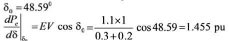 where E' is the infinite bus voltage (1.0 pu). Rearranging the formula, we get: