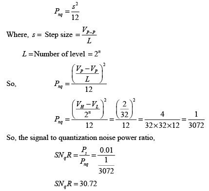 Here you can find the meaning of A message signal having peak-to-peak value of 2 V, root mean square value of 0.1 V and bandwidth of 5 kHz is sampled and fed to a pulse code modulation (PCM) system that uses a uniform quantizer. The PCM output is transmitted over a channel that can support a maximum transmission rate of 50 kbps. Assuming that the quantization error is uniformly distributed, the maximum signal to quantization noise ratio that can be obtained by the PCM system (rounded off to two decimal places) is ______.Correct answer is '30.72'. Can you explain this answer? defined & explained in the simplest way possible. Besides giving the explanation of A message signal having peak-to-peak value of 2 V, root mean square value of 0.1 V and bandwidth of 5 kHz is sampled and fed to a pulse code modulation (PCM) system that uses a uniform quantizer. The PCM output is transmitted over a channel that can support a maximum transmission rate of 50 kbps. Assuming that the quantization error is uniformly distributed, the maximum signal to quantization noise ratio that can be obtained by the PCM system (rounded off to two decimal places) is ______.Correct answer is '30.72'. Can you explain this answer?, a detailed solution for A message signal having peak-to-peak value of 2 V, root mean square value of 0.1 V and bandwidth of 5 kHz is sampled and fed to a pulse code modulation (PCM) system that uses a uniform quantizer. The PCM output is transmitted over a channel that can support a maximum transmission rate of 50 kbps. Assuming that the quantization error is uniformly distributed, the maximum signal to quantization noise ratio that can be obtained by the PCM system (rounded off to two decimal places) is ______.Correct answer is '30.72'. Can you explain this answer? has been provided alongside types of A message signal having peak-to-peak value of 2 V, root mean square value of 0.1 V and bandwidth of 5 kHz is sampled and fed to a pulse code modulation (PCM) system that uses a uniform quantizer. The PCM output is transmitted over a channel that can support a maximum transmission rate of 50 kbps. Assuming that the quantization error is uniformly distributed, the maximum signal to quantization noise ratio that can be obtained by the PCM system (rounded off to two decimal places) is ______.Correct answer is '30.72'. Can you explain this answer? theory, EduRev gives you an ample number of questions to practice A message signal having peak-to-peak value of 2 V, root mean square value of 0.1 V and bandwidth of 5 kHz is sampled and fed to a pulse code modulation (PCM) system that uses a uniform quantizer. The PCM output is transmitted over a channel that can support a maximum transmission rate of 50 kbps. Assuming that the quantization error is uniformly distributed, the maximum signal to quantization noise ratio that can be obtained by the PCM system (rounded off to two decimal places) is ______.Correct answer is '30.72'. Can you explain this answer? tests, examples and also practice Electronics and Communication Engineering (ECE) tests.