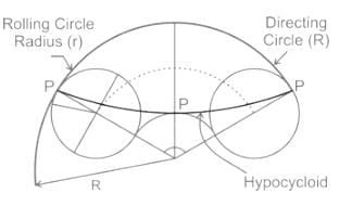 Hypocycloid: When the generating circle rolls on the inside (concave side) of a larger circle, the path of the point is a hypocycloid.