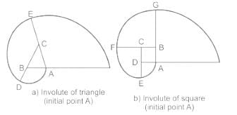 - Depending on the plane shape around which the line rolls, the involutes are named as involute of a triangle, involute of a square, involute of a polygon, involute of a circle etc