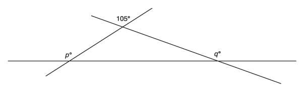 Find important definitions, questions, meanings, examples, exercises and tests below for In the figure below, what is the sum of p and q?a)75°b)150°c)180°d)285°e)360°Correct answer is option 'D'. Can you explain this answer?.