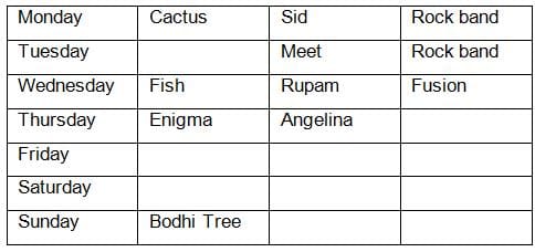 Directions: The following question is based on the given set of conditions. Choose the response that most accurately and completely answers the question.Seven bands were scheduled to perform during a week-long music festival at XLRI. The festival began on a Monday evening and ended on the Sunday evening. Each day, only one band performed. Each band performed only once. The organising committee had the task of scheduling the performances of the seven bands - Cactus, Axis, Enigma, Boom, Fish, Dhoom and Bodhi Tree. The festival schedule followed the following conditions:The performance of Bodhi Tree, the home band of XLRI, did not precede the performance of any other band. Among the visiting bands, three were rock bands and the other three were fusion bands. All three bands of the same genre were not allowed to perform consecutively. Boom, which was a rock band, refused to perform immediately before or after Fish. Meet, who was a lead vocalist with a rock band, refused to perform after Angelina. Angelina, the only female lead vocalist in the music fest besides Bony, was with the band Enigma. Angelina refused to perform after Thursday citing personal reasons. Ali, who was the lead vocalist of a rock band, was not with the band Dhoom, and did not perform on Saturday. Sid, the lead vocalist of the rock band Cactus, could perform only on Monday. Rupam, the only male among the lead vocalists of the fusion bands, was with Fish and performed on Wednesday. None of the bands performed in absence of their lead vocalist.Q.How many times from Monday to Saturday did the fusion band and rock band perform consecutively?Correct answer is '3'. Can you explain this answer? for CAT 2026 is part of CAT preparation. The Question and answers have been prepared according to the CAT exam syllabus. Information about Directions: The following question is based on the given set of conditions. Choose the response that most accurately and completely answers the question.Seven bands were scheduled to perform during a week-long music festival at XLRI. The festival began on a Monday evening and ended on the Sunday evening. Each day, only one band performed. Each band performed only once. The organising committee had the task of scheduling the performances of the seven bands - Cactus, Axis, Enigma, Boom, Fish, Dhoom and Bodhi Tree. The festival schedule followed the following conditions:The performance of Bodhi Tree, the home band of XLRI, did not precede the performance of any other band. Among the visiting bands, three were rock bands and the other three were fusion bands. All three bands of the same genre were not allowed to perform consecutively. Boom, which was a rock band, refused to perform immediately before or after Fish. Meet, who was a lead vocalist with a rock band, refused to perform after Angelina. Angelina, the only female lead vocalist in the music fest besides Bony, was with the band Enigma. Angelina refused to perform after Thursday citing personal reasons. Ali, who was the lead vocalist of a rock band, was not with the band Dhoom, and did not perform on Saturday. Sid, the lead vocalist of the rock band Cactus, could perform only on Monday. Rupam, the only male among the lead vocalists of the fusion bands, was with Fish and performed on Wednesday. None of the bands performed in absence of their lead vocalist.Q.How many times from Monday to Saturday did the fusion band and rock band perform consecutively?Correct answer is '3'. Can you explain this answer? covers all topics & solutions for CAT 2026 Exam. Find important definitions, questions, meanings, examples, exercises and tests below for Directions: The following question is based on the given set of conditions. Choose the response that most accurately and completely answers the question.Seven bands were scheduled to perform during a week-long music festival at XLRI. The festival began on a Monday evening and ended on the Sunday evening. Each day, only one band performed. Each band performed only once. The organising committee had the task of scheduling the performances of the seven bands - Cactus, Axis, Enigma, Boom, Fish, Dhoom and Bodhi Tree. The festival schedule followed the following conditions:The performance of Bodhi Tree, the home band of XLRI, did not precede the performance of any other band. Among the visiting bands, three were rock bands and the other three were fusion bands. All three bands of the same genre were not allowed to perform consecutively. Boom, which was a rock band, refused to perform immediately before or after Fish. Meet, who was a lead vocalist with a rock band, refused to perform after Angelina. Angelina, the only female lead vocalist in the music fest besides Bony, was with the band Enigma. Angelina refused to perform after Thursday citing personal reasons. Ali, who was the lead vocalist of a rock band, was not with the band Dhoom, and did not perform on Saturday. Sid, the lead vocalist of the rock band Cactus, could perform only on Monday. Rupam, the only male among the lead vocalists of the fusion bands, was with Fish and performed on Wednesday. None of the bands performed in absence of their lead vocalist.Q.How many times from Monday to Saturday did the fusion band and rock band perform consecutively?Correct answer is '3'. Can you explain this answer?.
