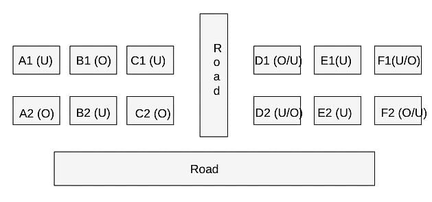 InstructionsThe schematic diagram below shows 12 rectangular houses in a housing complex. Housenumbers are mentioned in the rectangles representing the houses. The houses are located in six columns - Column-A through Column-F, and two rows - Row-1 and Row-2.The houses are divided into two blocks - Block XX and Block YY. The diagram also showstwo roads, one passing in front of the houses in Row-2 and another between the twoblocks.Some of the houses are occupied. The remaining ones are vacant and are the only onesavailable for sale.The road adjacency value of a house is the number of its sides adjacent to a road. Forexample, the road adjacency values of C2, F2, and B1 are 2, 1, and 0, respectively. The neighbour count of a house is the number of sides of that house adjacent to occupiedhouses in the same block. For example, E1 and C1 can have the maximum possible neighbour counts of 3 and 2, respectively.The base price of a vacant house is Rs. 10 lakhs if the house does not have a parkingspace, and Rs. 12 lakhs if it does. The quoted price (in lakhs of Rs.) of a vacant house iscalculated as (base price) + 5 × (road adjacency value) + 3 × (neighbour count).The following information is also known. The maximum quoted price of a house in Block XX is Rs. 24 lakhs. The minimumquoted price of a house in block YY is Rs. 15 lakhs, and one such house is in Column-E. Row-1 has two occupied houses, one in each block. Both houses in Column-E are vacant. Each of Column-D and Column-F has at least oneoccupied house. There is only one house with parking space in Block YY.How many houses are vacant in Block XX?Correct answer is '3'. Can you explain this answer?, a detailed solution for InstructionsThe schematic diagram below shows 12 rectangular houses in a housing complex. Housenumbers are mentioned in the rectangles representing the houses. The houses are located in six columns - Column-A through Column-F, and two rows - Row-1 and Row-2.The houses are divided into two blocks - Block XX and Block YY. The diagram also showstwo roads, one passing in front of the houses in Row-2 and another between the twoblocks.Some of the houses are occupied. The remaining ones are vacant and are the only onesavailable for sale.The road adjacency value of a house is the number of its sides adjacent to a road. Forexample, the road adjacency values of C2, F2, and B1 are 2, 1, and 0, respectively. The neighbour count of a house is the number of sides of that house adjacent to occupiedhouses in the same block. For example, E1 and C1 can have the maximum possible neighbour counts of 3 and 2, respectively.The base price of a vacant house is Rs. 10 lakhs if the house does not have a parkingspace, and Rs. 12 lakhs if it does. The quoted price (in lakhs of Rs.) of a vacant house iscalculated as (base price) + 5 × (road adjacency value) + 3 × (neighbour count).The following information is also known. The maximum quoted price of a house in Block XX is Rs. 24 lakhs. The minimumquoted price of a house in block YY is Rs. 15 lakhs, and one such house is in Column-E. Row-1 has two occupied houses, one in each block. Both houses in Column-E are vacant. Each of Column-D and Column-F has at least oneoccupied house. There is only one house with parking space in Block YY.How many houses are vacant in Block XX?Correct answer is '3'. Can you explain this answer? has been provided alongside types of InstructionsThe schematic diagram below shows 12 rectangular houses in a housing complex. Housenumbers are mentioned in the rectangles representing the houses. The houses are located in six columns - Column-A through Column-F, and two rows - Row-1 and Row-2.The houses are divided into two blocks - Block XX and Block YY. The diagram also showstwo roads, one passing in front of the houses in Row-2 and another between the twoblocks.Some of the houses are occupied. The remaining ones are vacant and are the only onesavailable for sale.The road adjacency value of a house is the number of its sides adjacent to a road. Forexample, the road adjacency values of C2, F2, and B1 are 2, 1, and 0, respectively. The neighbour count of a house is the number of sides of that house adjacent to occupiedhouses in the same block. For example, E1 and C1 can have the maximum possible neighbour counts of 3 and 2, respectively.The base price of a vacant house is Rs. 10 lakhs if the house does not have a parkingspace, and Rs. 12 lakhs if it does. The quoted price (in lakhs of Rs.) of a vacant house iscalculated as (base price) + 5 × (road adjacency value) + 3 × (neighbour count).The following information is also known. The maximum quoted price of a house in Block XX is Rs. 24 lakhs. The minimumquoted price of a house in block YY is Rs. 15 lakhs, and one such house is in Column-E. Row-1 has two occupied houses, one in each block. Both houses in Column-E are vacant. Each of Column-D and Column-F has at least oneoccupied house. There is only one house with parking space in Block YY.How many houses are vacant in Block XX?Correct answer is '3'. Can you explain this answer? theory, EduRev gives you an