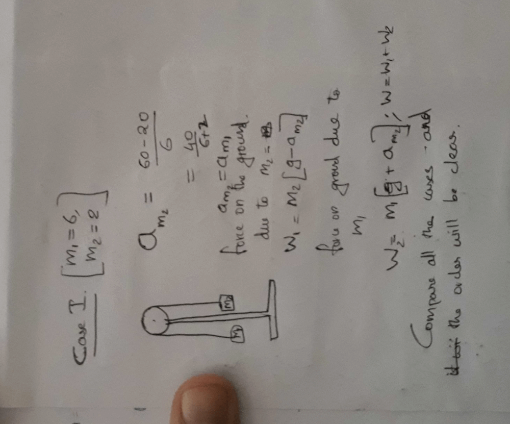 Two masses m1 and m2 which are connected with a light string, are placed over a frictionless pulley. This set up is placed over a weighing machine, as shown. Three combination of masses m1 and m2 are used, in first case m1 = 6 kg and m2 = 2 kg, in second case m1 = 5 kg and m2 = 3kg and in third case m1 = 4 kg and m2 = 4 kg. Masses are held stationary initially and then released. If the readings of the weighing machine after the release in three cases are W1, W2 and W3 respectively then :a)b)c)d)Correct answer is option 'B'. Can you explain this answer?, a detailed solution for Two masses m1 and m2 which are connected with a light string, are placed over a frictionless pulley. This set up is placed over a weighing machine, as shown. Three combination of masses m1 and m2 are used, in first case m1 = 6 kg and m2 = 2 kg, in second case m1 = 5 kg and m2 = 3kg and in third case m1 = 4 kg and m2 = 4 kg. Masses are held stationary initially and then released. If the readings of the weighing machine after the release in three cases are W1, W2 and W3 respectively then :a)b)c)d)Correct answer is option 'B'. Can you explain this answer? has been provided alongside types of Two masses m1 and m2 which are connected with a light string, are placed over a frictionless pulley. This set up is placed over a weighing machine, as shown. Three combination of masses m1 and m2 are used, in first case m1 = 6 kg and m2 = 2 kg, in second case m1 = 5 kg and m2 = 3kg and in third case m1 = 4 kg and m2 = 4 kg. Masses are held stationary initially and then released. If the readings of the weighing machine after the release in three cases are W1, W2 and W3 respectively then :a)b)c)d)Correct answer is option 'B'. Can you explain this answer? theory, EduRev gives you an