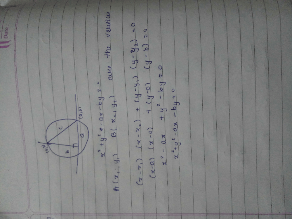 The equation of the circle passing through (0, 0) and making intercepts a and b on the coordinate axes is: