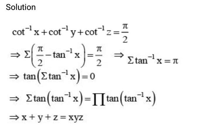 Here you can find the meaning of If cot-1 x + cot-1 y + cot-1 then x + y + z is equal toa)b)xyzc)xy + yz + zxd)none of theseCorrect answer is option 'B'. Can you explain this answer? defined & explained in the simplest way possible. Besides giving the explanation of If cot-1 x + cot-1 y + cot-1 then x + y + z is equal toa)b)xyzc)xy + yz + zxd)none of theseCorrect answer is option 'B'. Can you explain this answer?, a detailed solution for If cot-1 x + cot-1 y + cot-1 then x + y + z is equal toa)b)xyzc)xy + yz + zxd)none of theseCorrect answer is option 'B'. Can you explain this answer? has been provided alongside types of If cot-1 x + cot-1 y + cot-1 then x + y + z is equal toa)b)xyzc)xy + yz + zxd)none of theseCorrect answer is option 'B'. Can you explain this answer? theory, EduRev gives you an ample number of questions to practice If cot-1 x + cot-1 y + cot-1 then x + y + z is equal toa)b)xyzc)xy + yz + zxd)none of theseCorrect answer is option 'B'. Can you explain this answer? tests, examples and also practice JEE tests.