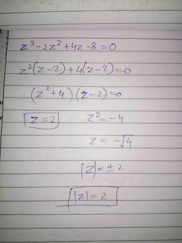 If z3– 2z2+ 4z – 8 = 0 then :a)|z| = 1b)|z| = 2c)|z| = 3d)...