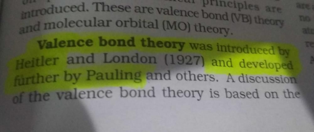 Class 11 Exam  >  Class 11 Questions  >  Valence bond theory was introduced by:a)Gille... Start Learning for Free