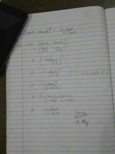 Prove that cot 2theta - cosec2 theta = 1-cos/1 cos?