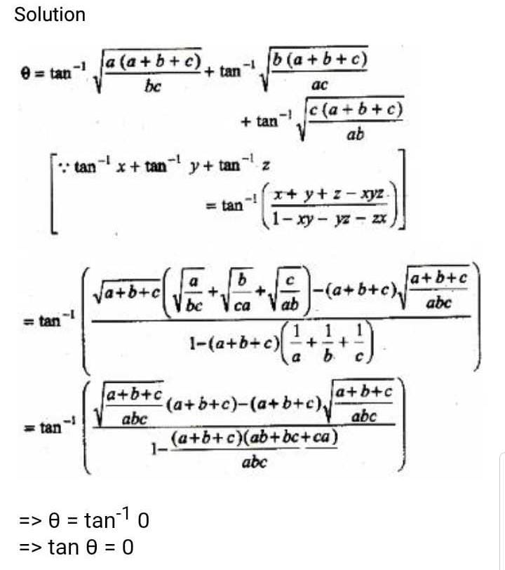 Here you can find the meaning of If a, b, c be positive real numbers and the value of then tanθ is equal to -a)0b)1c)d)None of theseCorrect answer is option 'A'. Can you explain this answer? defined & explained in the simplest way possible. Besides giving the explanation of If a, b, c be positive real numbers and the value of then tanθ is equal to -a)0b)1c)d)None of theseCorrect answer is option 'A'. Can you explain this answer?, a detailed solution for If a, b, c be positive real numbers and the value of then tanθ is equal to -a)0b)1c)d)None of theseCorrect answer is option 'A'. Can you explain this answer? has been provided alongside types of If a, b, c be positive real numbers and the value of then tanθ is equal to -a)0b)1c)d)None of theseCorrect answer is option 'A'. Can you explain this answer? theory, EduRev gives you an ample number of questions to practice If a, b, c be positive real numbers and the value of then tanθ is equal to -a)0b)1c)d)None of theseCorrect answer is option 'A'. Can you explain this answer? tests, examples and also practice JEE tests.