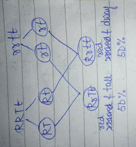 If a plant with RRTt genotype is crossed with a plant that is rrtt 50% of the offspring will be tall with red fruit.