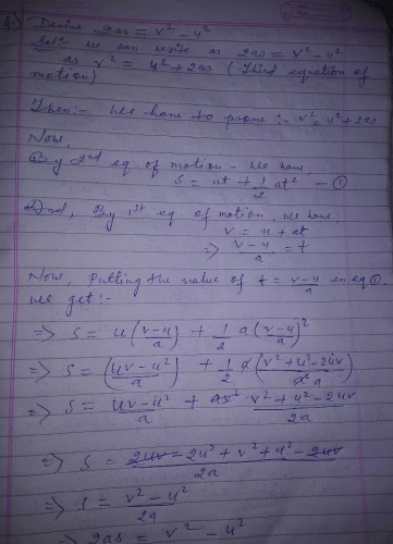 To derive the equation 2as = v^2 - u^2, where "a" represents acceleration, "s" represents displacement, "v" represents final velocity, and "u" represents initial velocity, we can start by using the kinematic equations of motion.