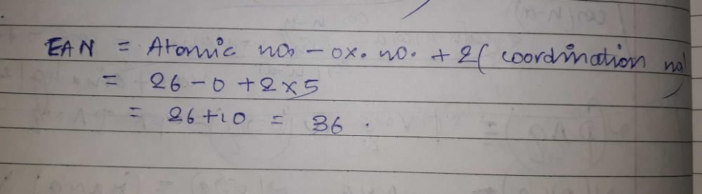 The effective atomic number of Fe inFe(CO)5isa)34b)24c)36d)26Correct a...
