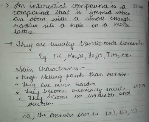 Solutions for Which of the following is not an interstitial compound?a)Mn4Nb)TiCc)Fe3Hd)FeCl3Correct answer is option 'D'. Can you explain this answer? in English & in Hindi are available as part of our courses for Class 12. Download more important topics, notes, lectures and mock test series for Class 12 Exam by signing up for free.