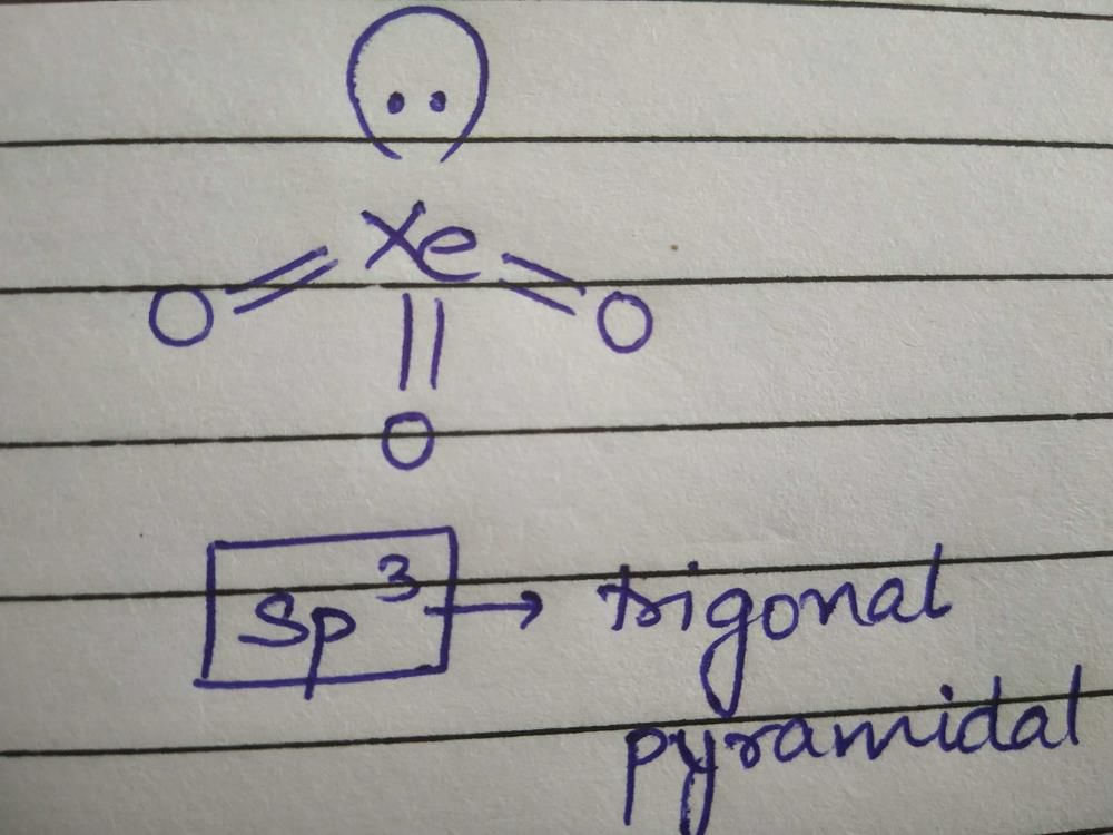 What is the hybridisation of Xe in XeO3?a)sp3b)sp3dc)sp3d3d)dsp2Correc...