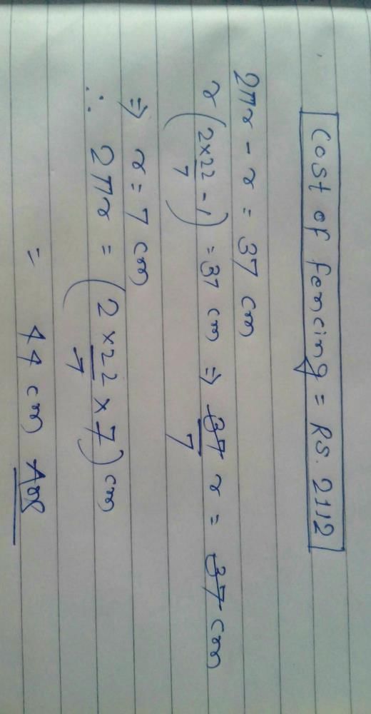 If the difference between the circumference and the radius of a circle is 37 cm, then usingπ= 22/7, the circumference (in cm) of the circle is:a)44b)7c)14d)154Correct answer is option 'A'. Can you explain this answer? for Class 10 2025 is part of Class 10 preparation. The Question and answers have been prepared