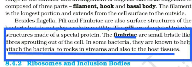 (a) Fimbriae assist to some bacteria to get attachment with rocks or host body to get establishment and nutrition.