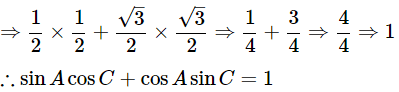 ∴ sin60°cos30°+sin30°cos60° = 1