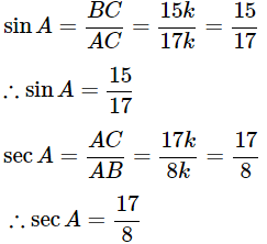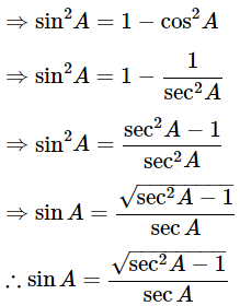 Ans: Express the value of sinA in terms of secA