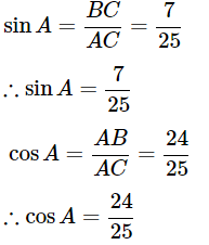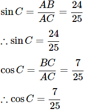 Q1: In ΔABC , Right Angled at B, AB = 24cm, BC = 7cm.