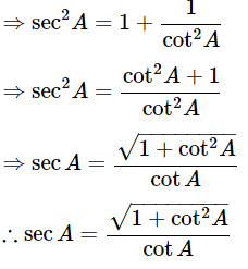 We know that, 1+tan2θ = sec2θ and 1+cot2θ = cosec2A