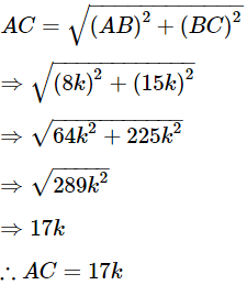 Now, AB = 8k and BC = 15k.