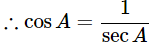 ∴ cosA = 1/secA