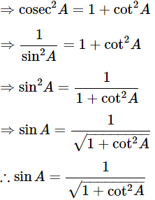 Ans: Find the value for sinA in terms of cotA