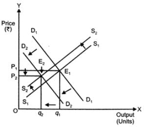 The simultaneous decrease in demand and supply affects the equilibrium price and output depending on the magnitude of the change in demand and supply. The simultaneous decrease in the demand and supply can be bifurcated into the following three conditions.
