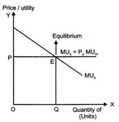 Ans: In order to decide, how much of a good to buy at a given price, a consumer compares Marginal Utility (MU) of the good with its price (P). The consumer will be at equilibrium, when the Marginal Utility of the good will be equal to the price of the good.
