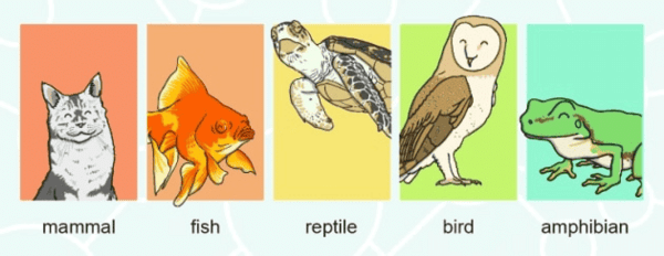 The five groups of animals with backbones are mammals, birds, reptiles, amphibians, and fish. |